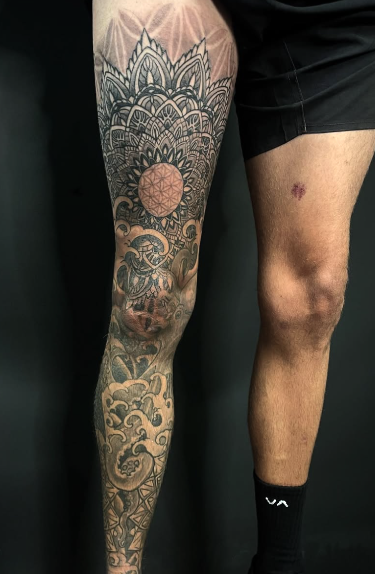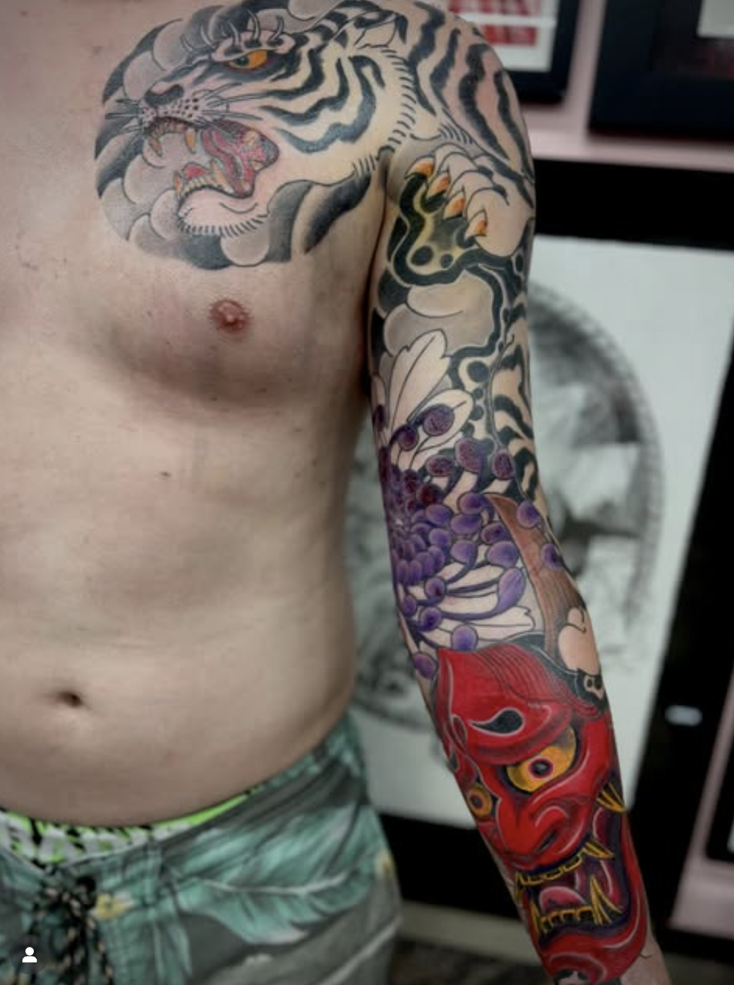 While versatile across many styles, Dan’s work is heavily influenced by Japanese tattoo art and American Traditional, two forms that continue to inspire his artistic direction. His travels to both Japan and the United States have played a significant role in shaping his style, allowing him to study the foundations of these traditions and bring that depth of knowledge into his own practice.