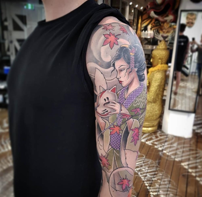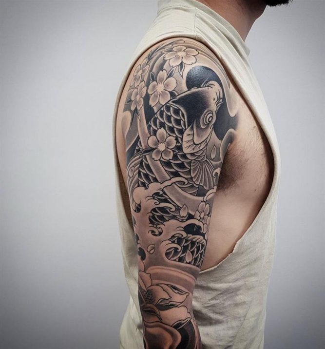 Japanese Snake and Peonies Tattooed by @dylanpet