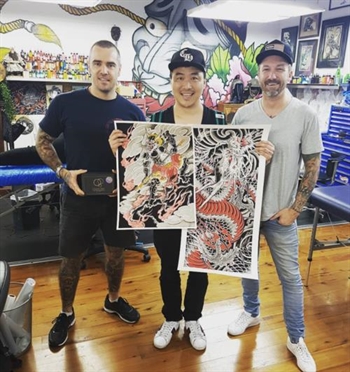 In case you missed it Haewall joined us all the way from Korea and stuck around for the week after for a guest spot at the Studio. Known for his flawless Irezumi style Haewall and Rhys Gordon got together for some collaboration tattoos which you can see below. Haewall is currently away from Sydney but will be rejoining us at the end of April for one more week. Get in touch with the studio directly for more info.